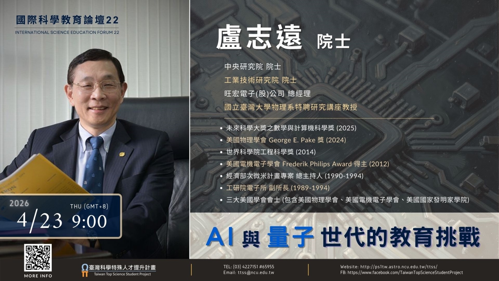 115年4月23日辦理線上講座:《國際科學教育論壇系列22》—— 「AI 與量子世代的教育挑戰」
