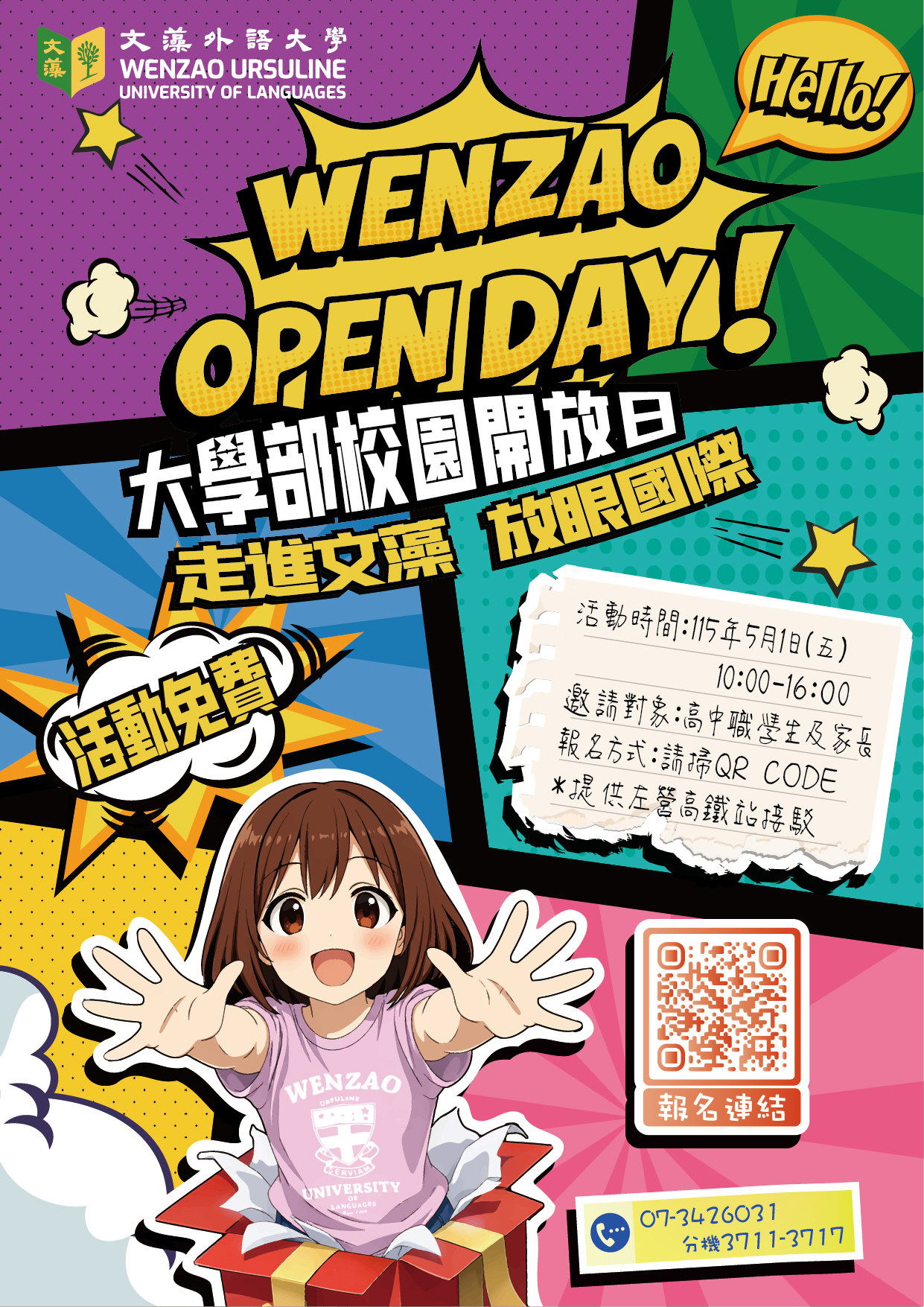 主旨:函送本校辦理115年大學部校園開放日活動海報,請惠予公告並邀請貴校蒞臨指導。