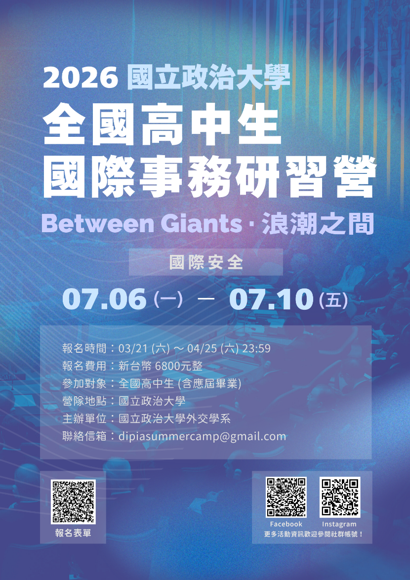 【營隊活動】政治大學外交學系「2026全國高中生國際事務研習營」